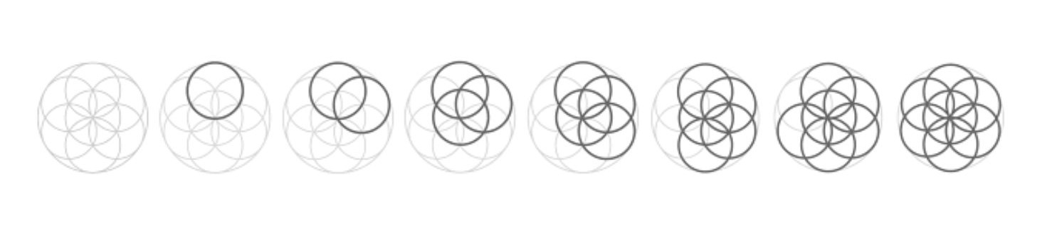 下个阶段,诞生了“生命之花” g ,可以简化成1个中央圆和6个外接圆。